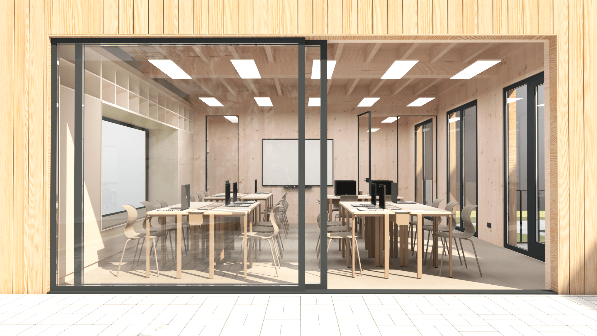 Při návrhu pracujeme s orientací ke světovým stranám, s mikroklimatem místa, se vztahem k okolní zeleni i s pohledy do krajiny. Učebna se tak nestává cizorodým prvkem, ale přirozenou součástí školního nebo obecního areálu. Architektura ViVA VEN je otevřená, čitelná a srozumitelná – děti i dospělí se v ní orientují intuitivně a vnímají ji jako prostor, který k místu patří.