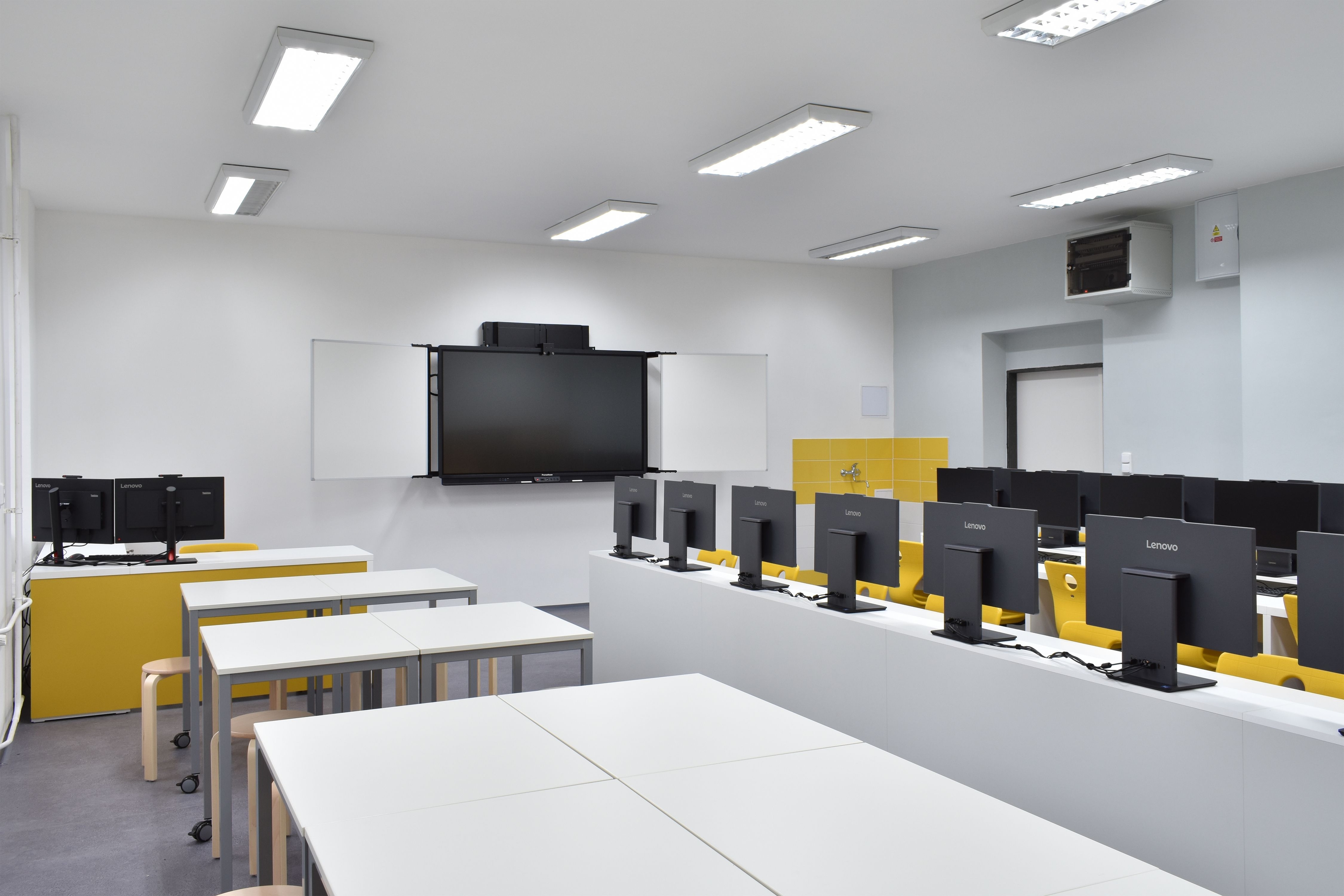Pro samotnou výuku mají žáci i pedagog k dispozici moderní interaktivní panel, jehož výška je nastavitelná díky systému BalanceBox, což zajišťuje ergonomické a bezpečné používání pro různé věkové skupiny. Celé technické vybavení učebny, zaměřené na rozvoj informatického a logického myšlení žáků, bylo realizováno ve spolupráci se společností aktivnítřída