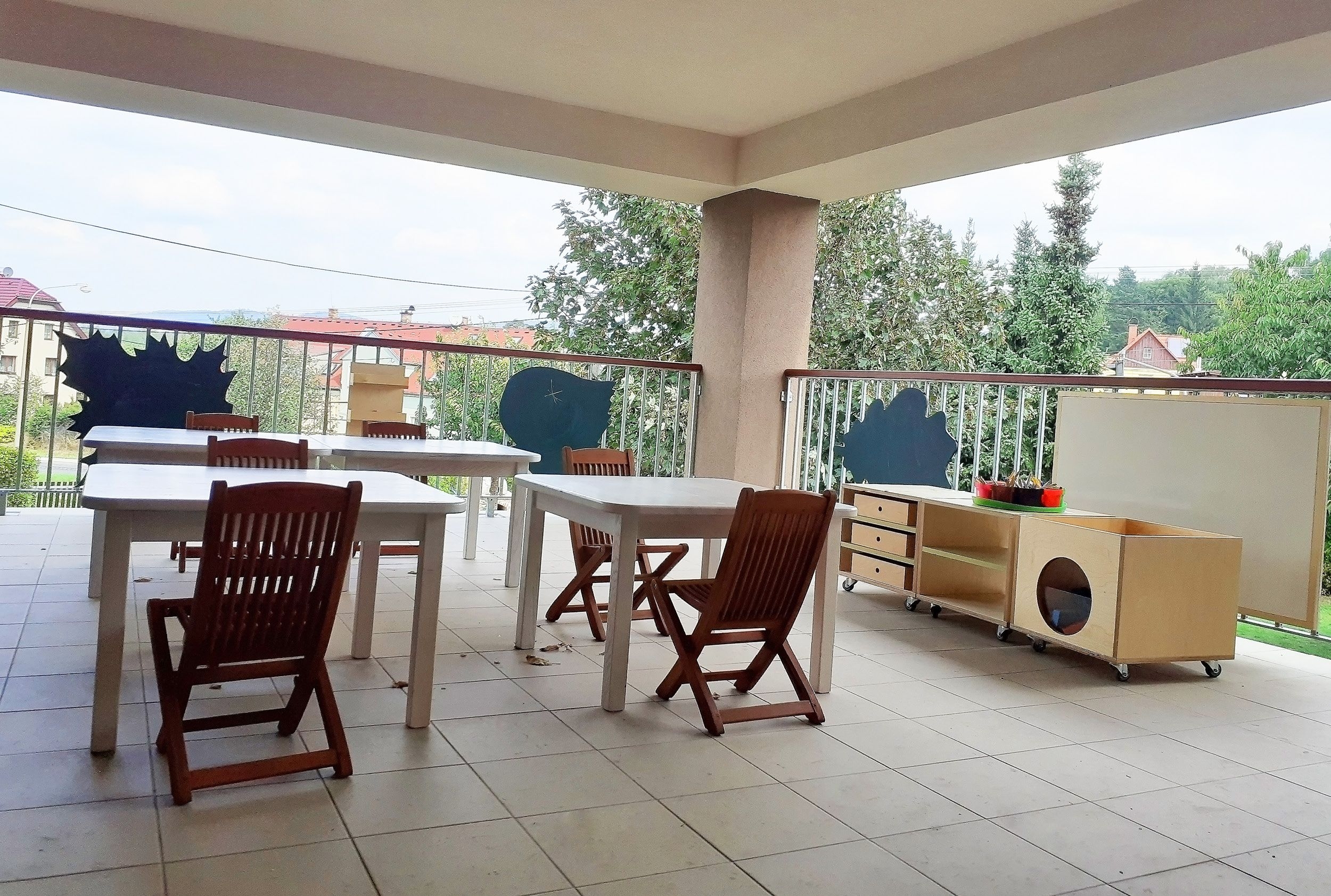 Venkovní třída je navržena jako flexibilní a kreativní prostor, který dětem umožňuje volně se pohybovat a využívat prostředí podle svých aktuálních potřeb a představ. Její základ tvoří variabilní sestava nábytku, která je snadno přizpůsobitelná různým aktivitám a situacím.